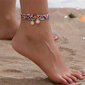 Colourful beaded women’s anklet evoking desert or picnic vibe